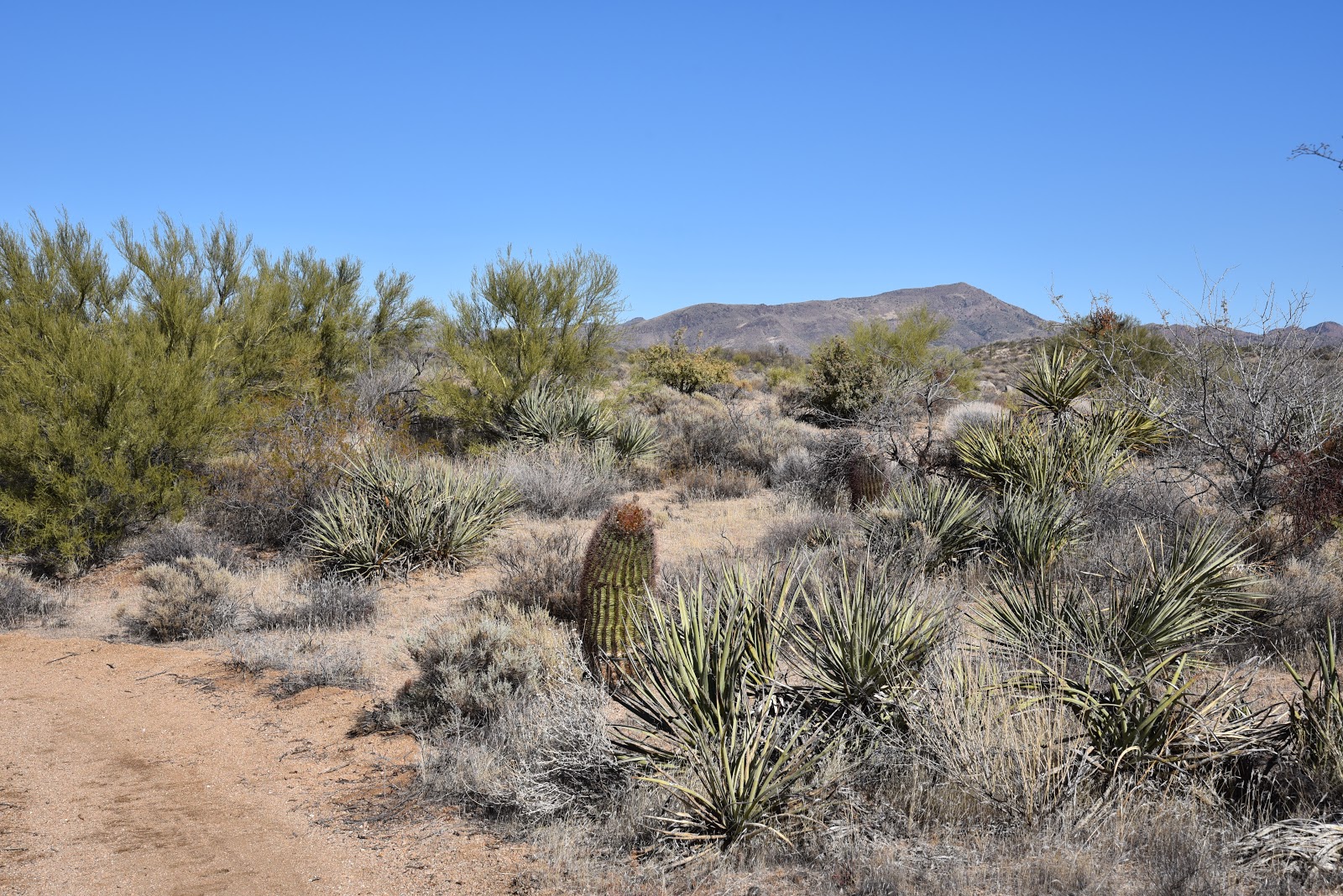 then continues to the north boundary of the McDowell Sonoran Preserve. Here, the trail ascends to metal gates and barbed