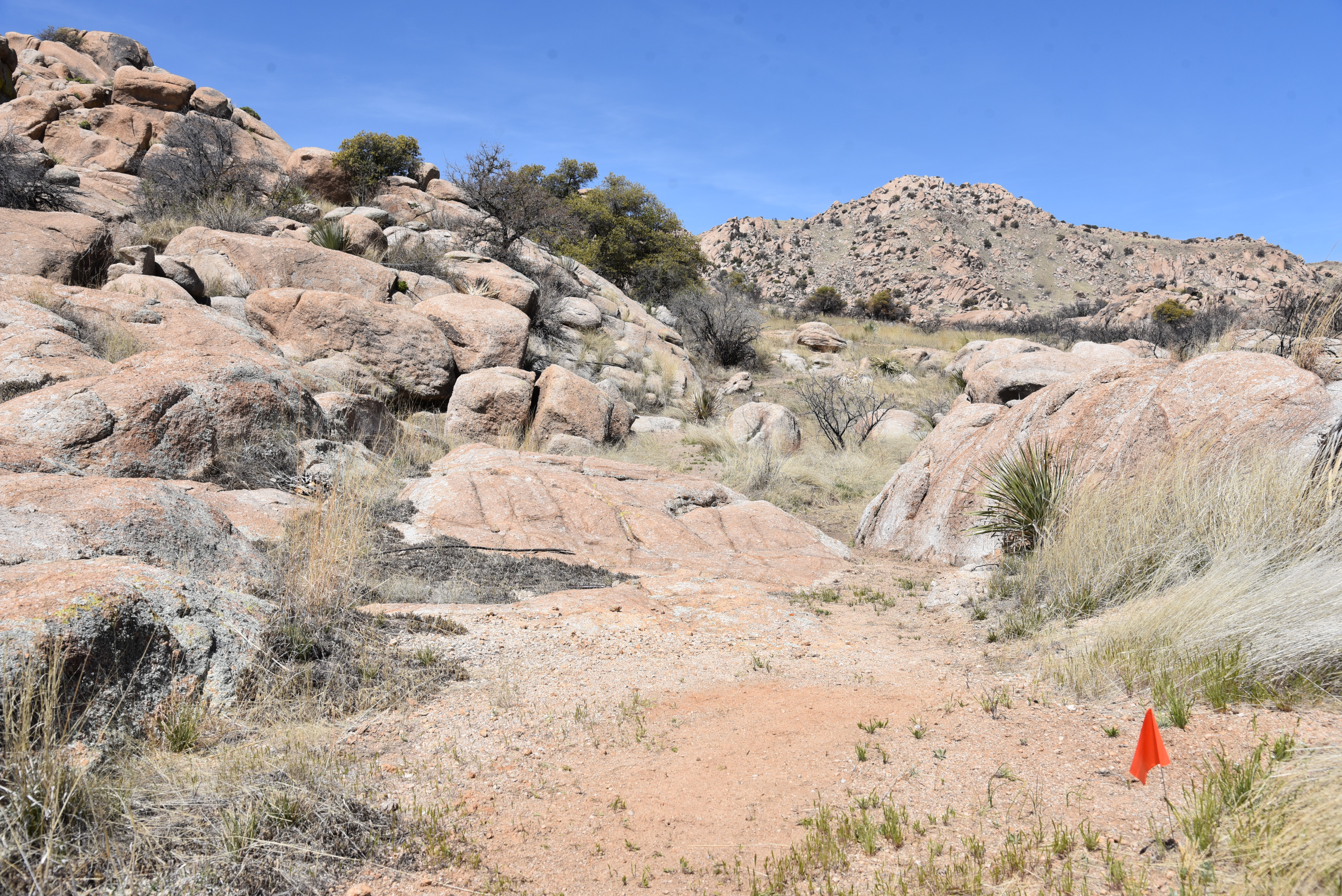 “For construction we used Flagline Trails, a Flagstaff-based contractor,” Rana says. “They are incredibly talented and the crew did an amazing job. They took my design and made it as good as can be. The system has three access points, north and south loops plus an out-and-back trail to whale rock. There will be benches placed along the routes and signage and painted paw prints to mark the trails where they cross bedrock will be installed over the summer. The trails will be open for day use only . There’s no camping at the site, but there are plenty of places to camp and stay in neighboring towns and in Coronado National Forest.”